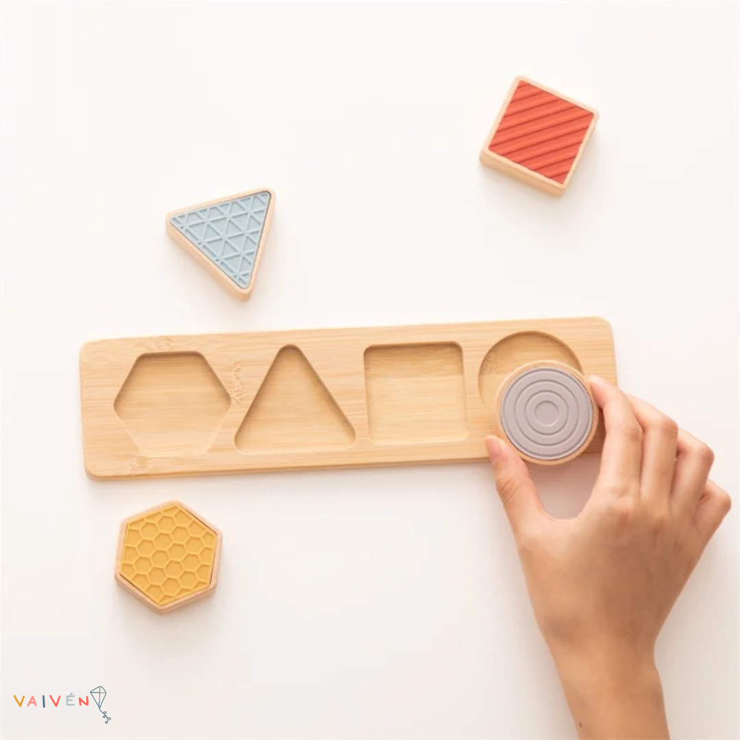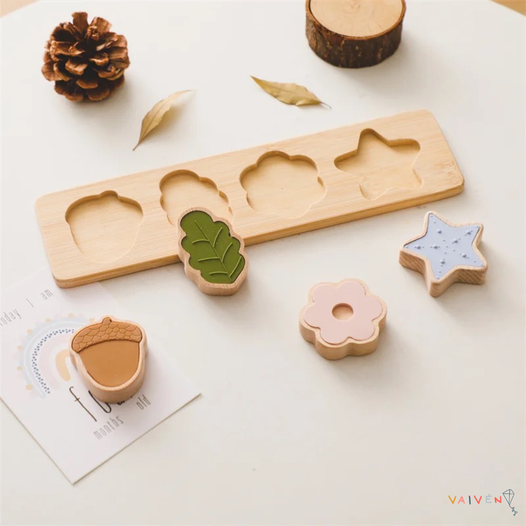 Encastre en base de madera y piezas de silicona. Juego de cognitivo y de coordinación
