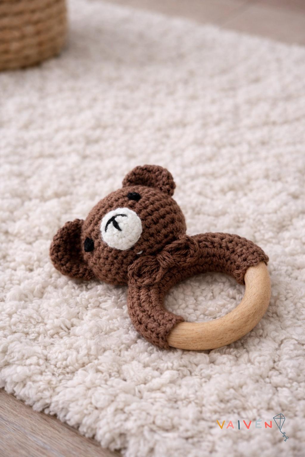 Este tierno y cálido sonajero de tela y madera produce un sonido agradable que favorece a estimular el sentido auditivo del bebé. Además, su textura puede proporcionar una experiencia táctil interesante.