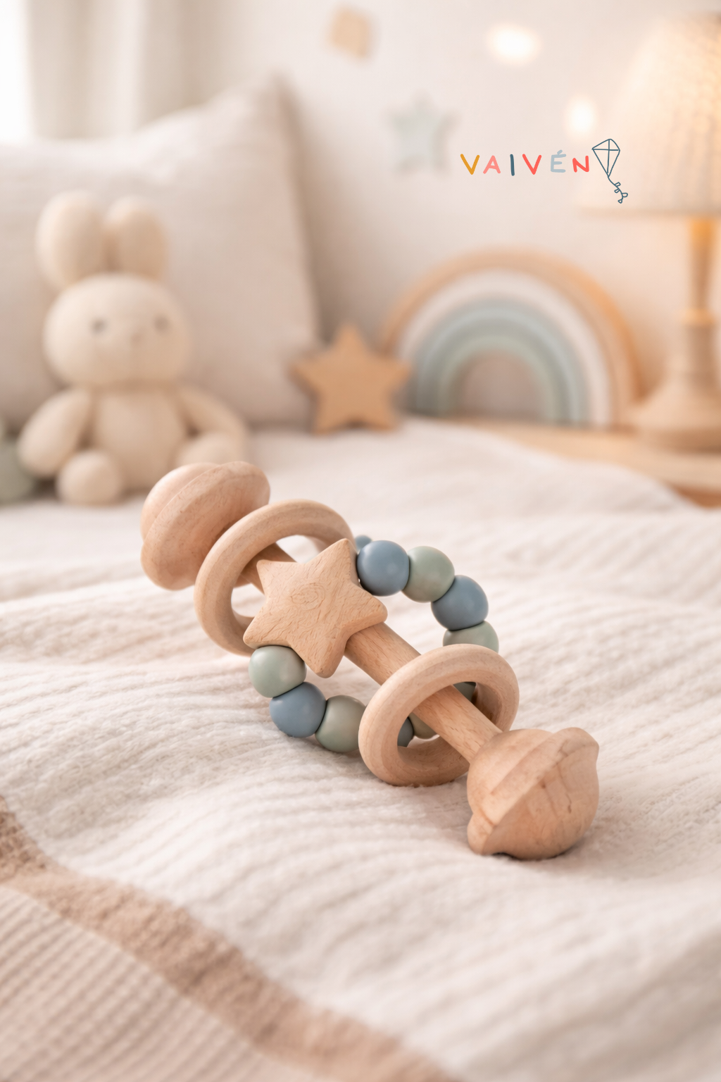 Los sonajeros que combinan madera y silicona ofrecen una mezcla equilibrada de seguridad, durabilidad y estimulación sensorial, haciendo que sean una excelente opción para el desarrollo del bebé. Nuestros sonajeros son de alta calidad y seguros para el uso infantil.